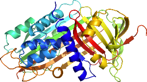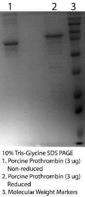 Prothrombin (factor II) is a vitamin K dependent protein that is involved in coagulation. Upon activation, prothrombin is cleaved to form thrombin.Thrombin is a serine protease that converts fibrinogen into fibrin which forms a clot. In addition, thrombin catalyzes many other coagulation-related reactions