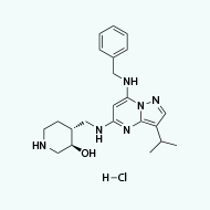 • Displays 45-, 15-, 230- and 30-fold selectivity over CDK1, CDK2, CDK5 and CDK9, respectively.